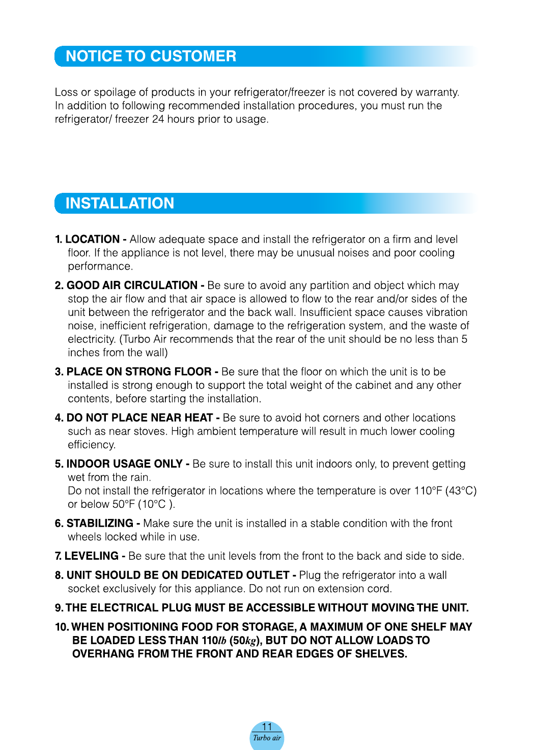 Turbo Air Manuals