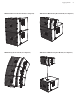 Rigging Manual 33 4. A second TBV123 cabinet can be added to the ground stack. Lower it onto the first TBV123 cabinet and make sure its feet fit into the recesses on the top surface of the first TBV123 cabinet. Attach it to the mounting links of the first TBV123 cabinet, and secure with the rigging pins in the same way as shown in step 3. Take care not to trap your fingers between components. Double check that all pins are correctly inserted.