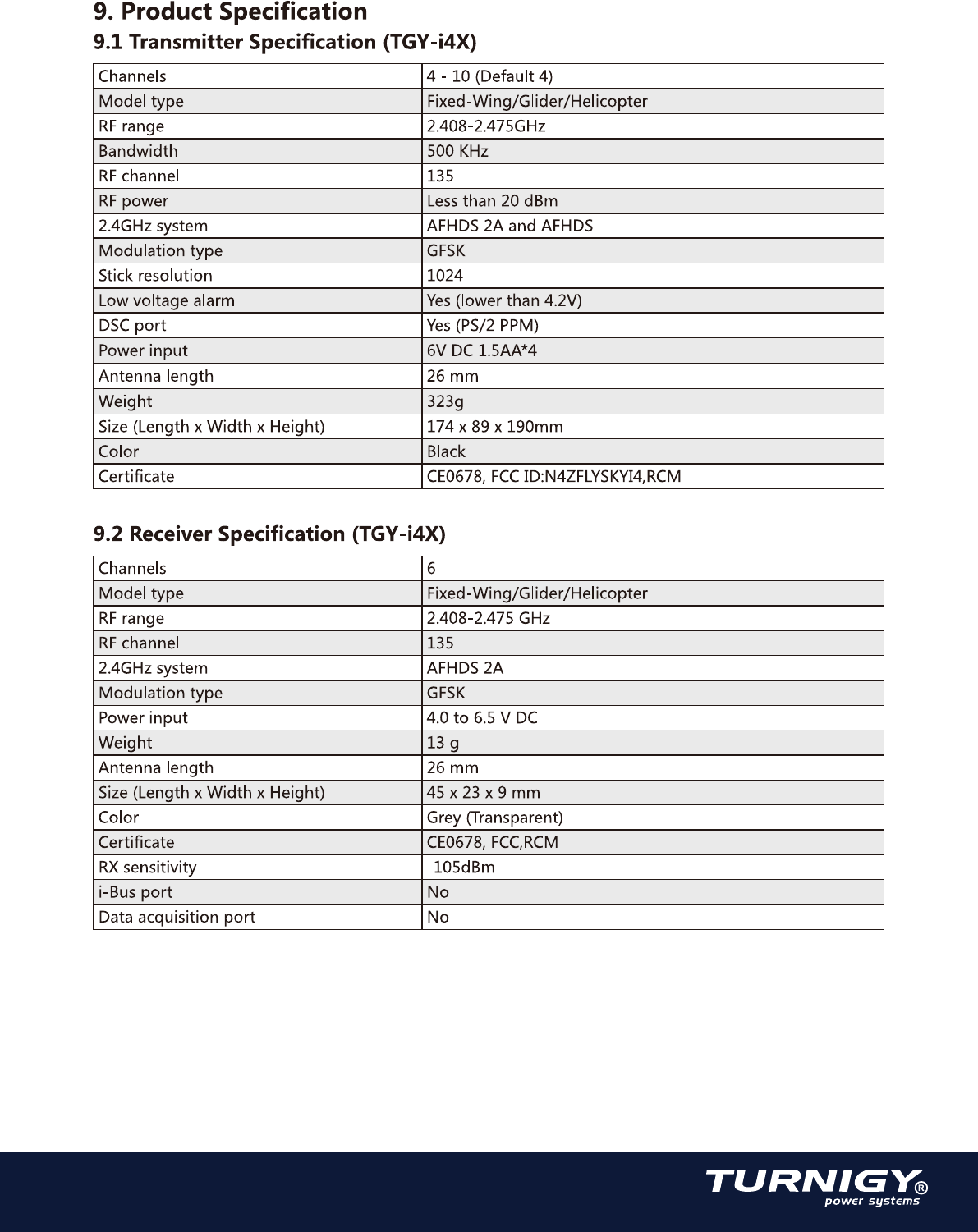 TGY-i4X AFHDS/AFHDS 2A Switchable 4CH Transmitter/Receiver (Mode 1)