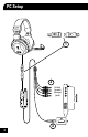 Step 1: Align the multi-pin amplifier and headphone connectors as shown and carefully insert them together, making sure not to force the pins. Step 2: Connect the four colored audio jacks to the corresponding inputs and outputs on your sound card, as indicated in the table below: JACK COLOR Center/Sub Orange Mic Pink Front Green Surround Black Step 3: Insert the USB connector into any USB port on your PC. Step 4: Select the microphone as the recording source in your sound card’s control panel.