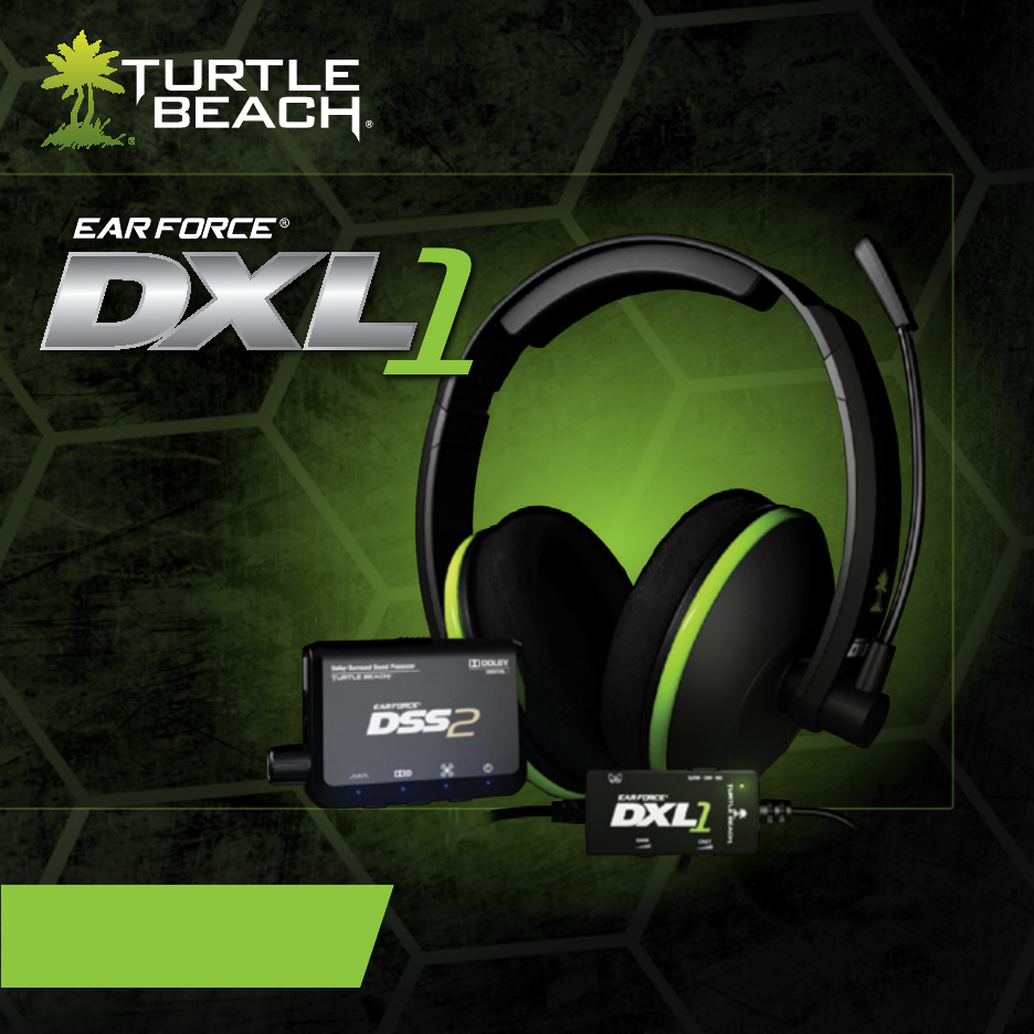 Package Contents / Contenu de la boîte GAME CHAT ON MIC E MUT GAME DXL1 Headset / Casque DXL1 DSS2 Surround Sound Processor / Processeur de Son Surround DSS2 ON MIC MUTE GAME Dolby® Surround Sound Gaming Headset / Casque pour jeux vidéo avec son Surround Dolby CHAT TURTLEBEACH.