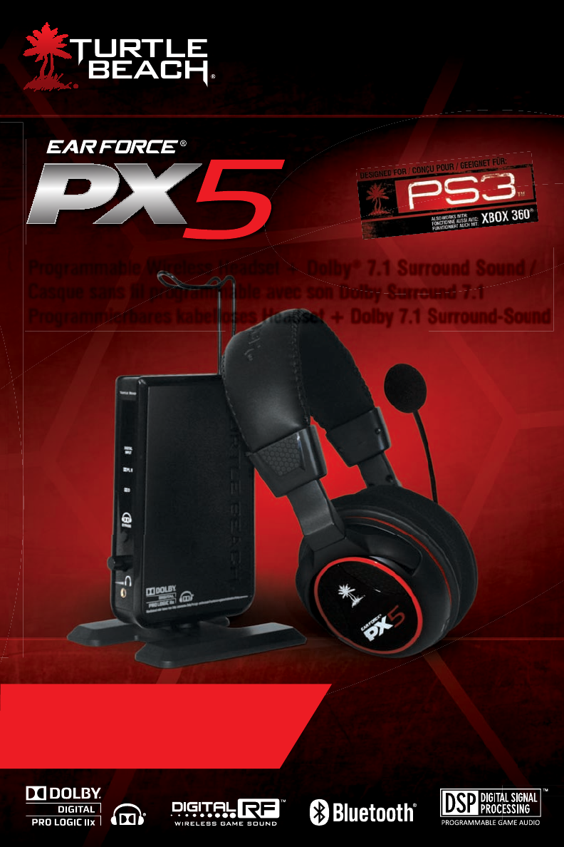 Download the PX5 Preset Software and additional presets at: www.TurtleBeach.com FRANÇAIS Téléchargez le logiciel de préréglage du PX5 et d’autres préréglages sur www.TurtleBeach.com ESPAÑOL Descargue el software de precalibraciones del PX5 y otras calibraciones en www.TurtleBeach.com DEUTSCH Laden Sie sich die PX5 Preset Software und weitere Presets (Voreinstellungen) herunter: www.TurtleBeach.com SVENSK Hämta mjukvara för förhandsinställningar till PX5 och andra förhandsinställningar på: www.