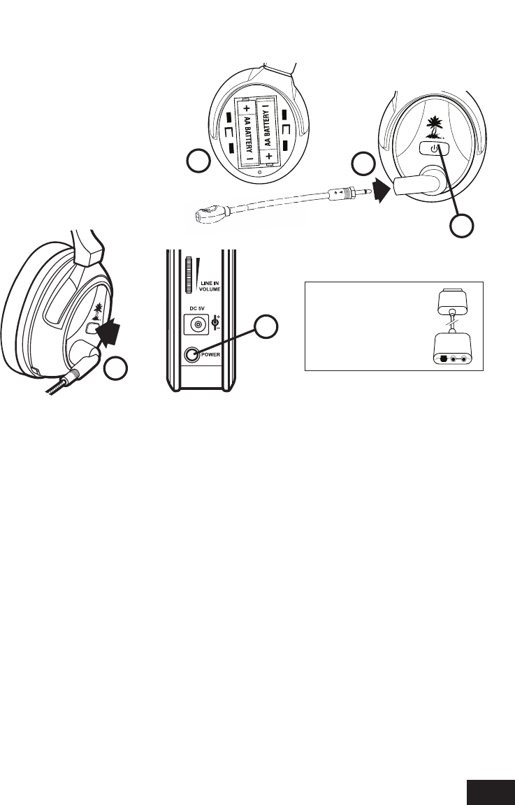 3. Introduzca las pilas de los auriculares tal como se muestra.