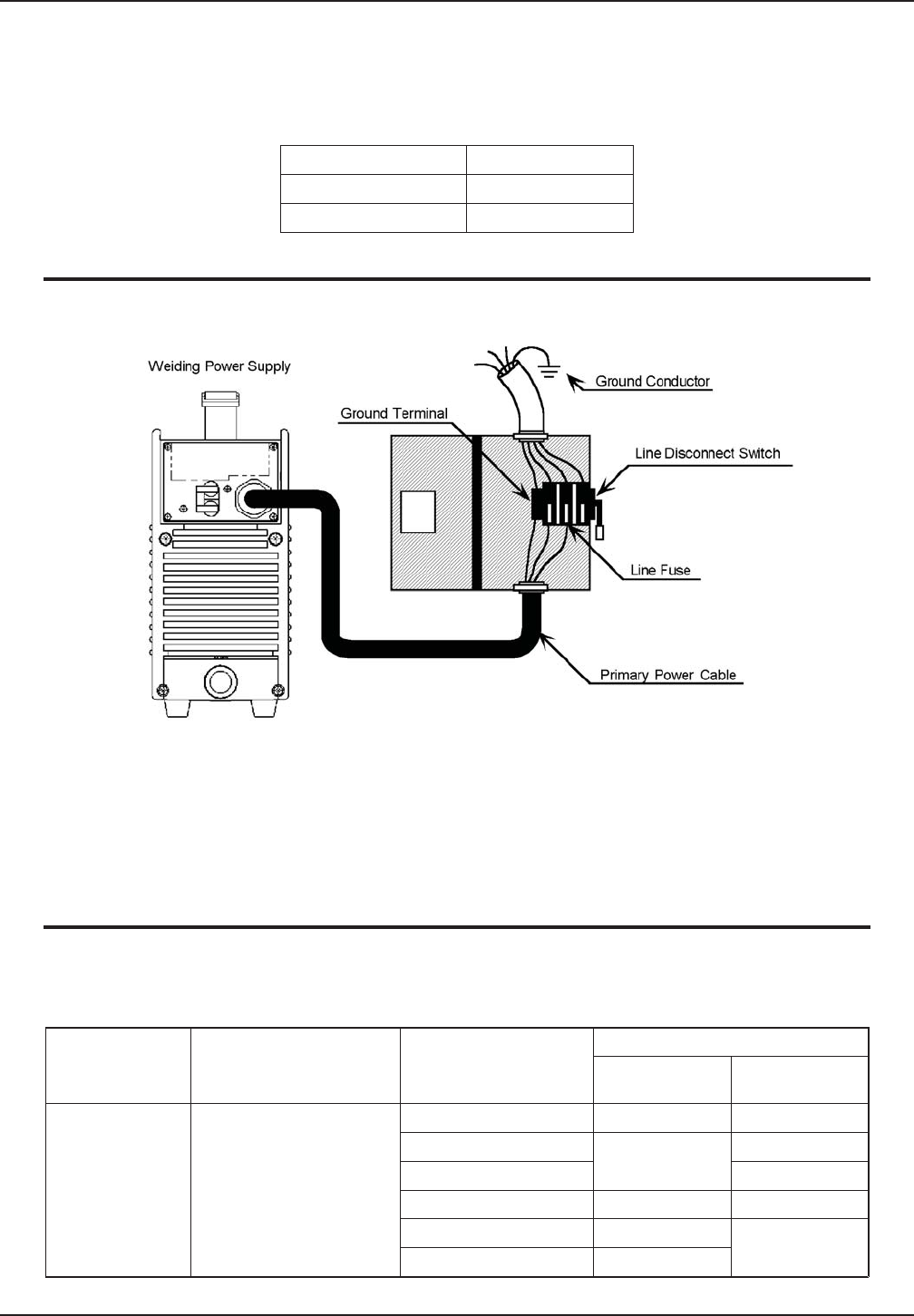 Fuse size is based on not more than 200 percent of the rated input amperage of the welding power source (Based