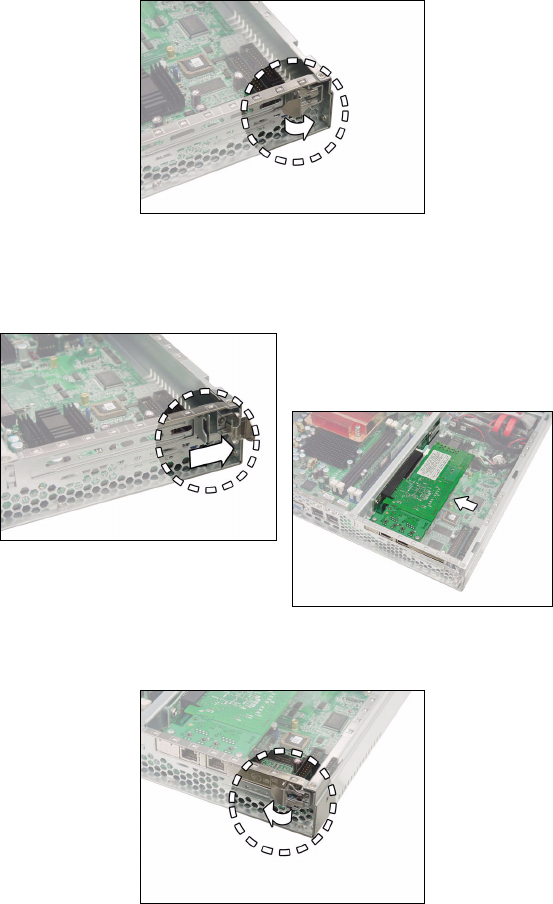 - 1. Push the tab of PCI slot on the rear panel in the direction as shown to release the bracket.