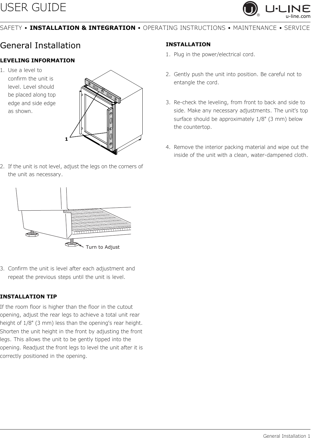 SAFETY • INSTALLATION & INTEGRATION • OPERATING INSTRUCTIONS • MAINTENANCE • SERVICE