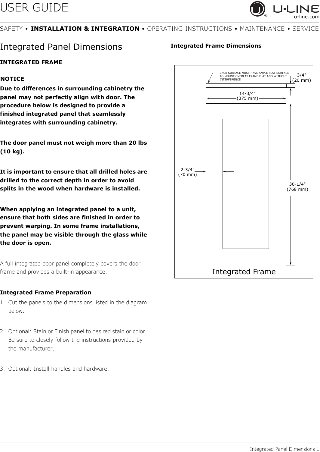 Integrated Panel Dimensions 1