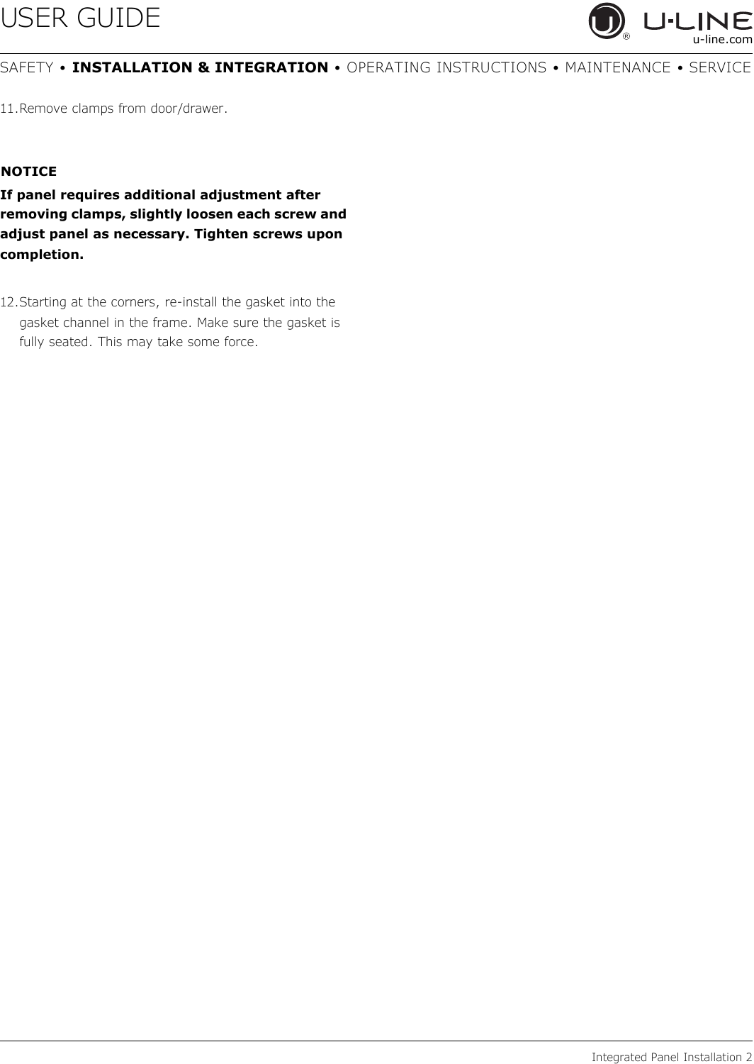 SAFETY • INSTALLATION & INTEGRATION • OPERATING INSTRUCTIONS • MAINTENANCE • SERVICE