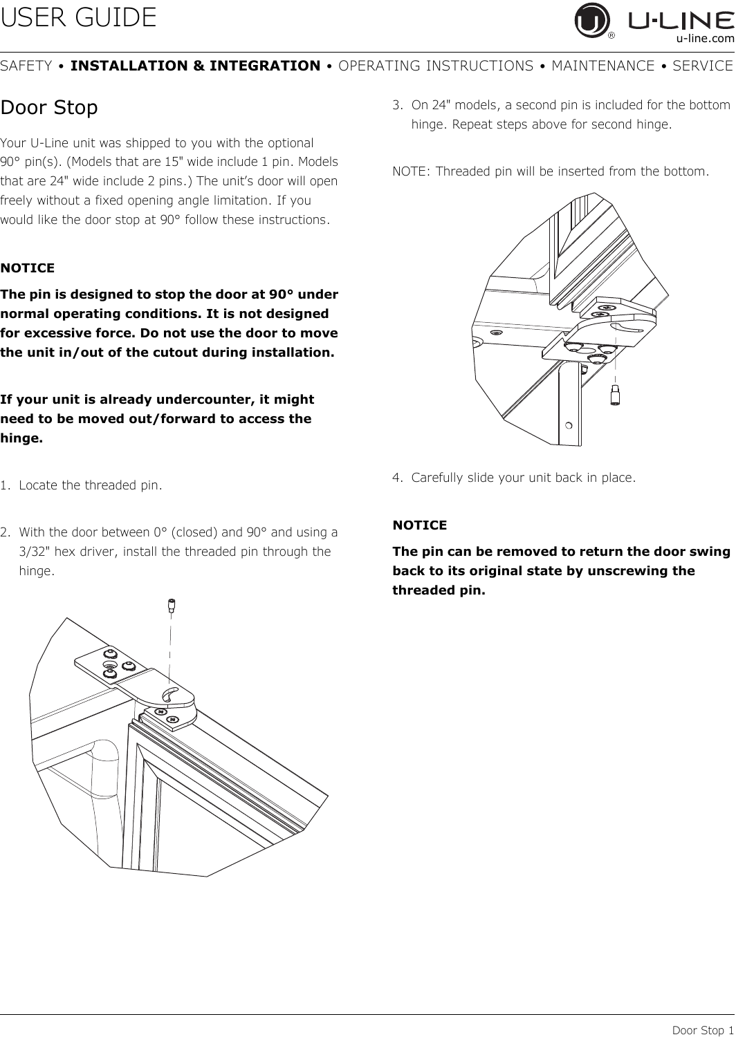 that are 24" wide include 2 pins.) The unit’s door will open