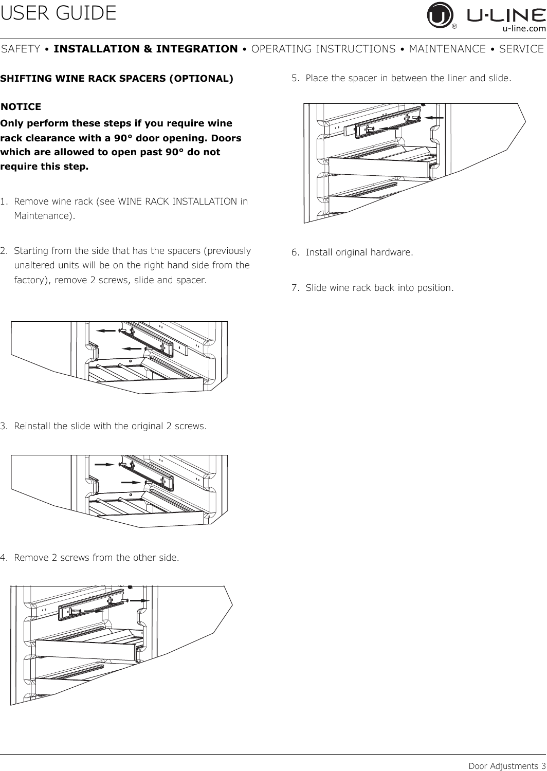1. Remove wine rack (see WINE RACK INSTALLATION in