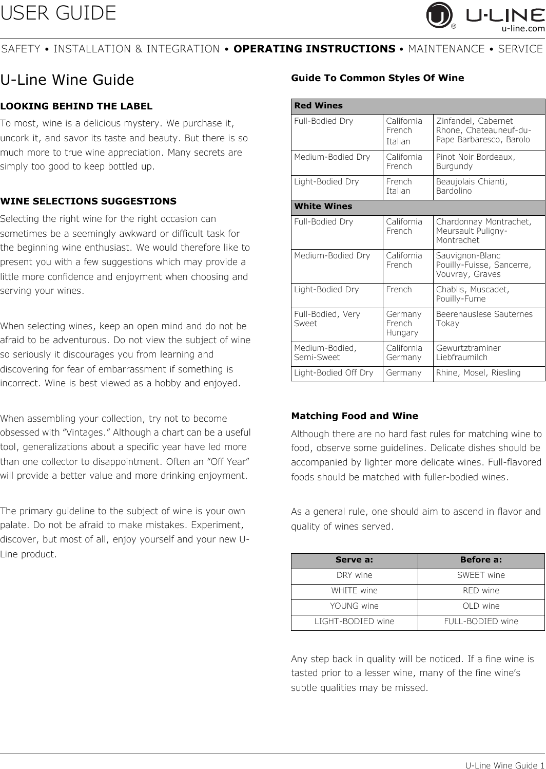 SAFETY • INSTALLATION & INTEGRATION • OPERATING INSTRUCTIONS • MAINTENANCE • SERVICE
