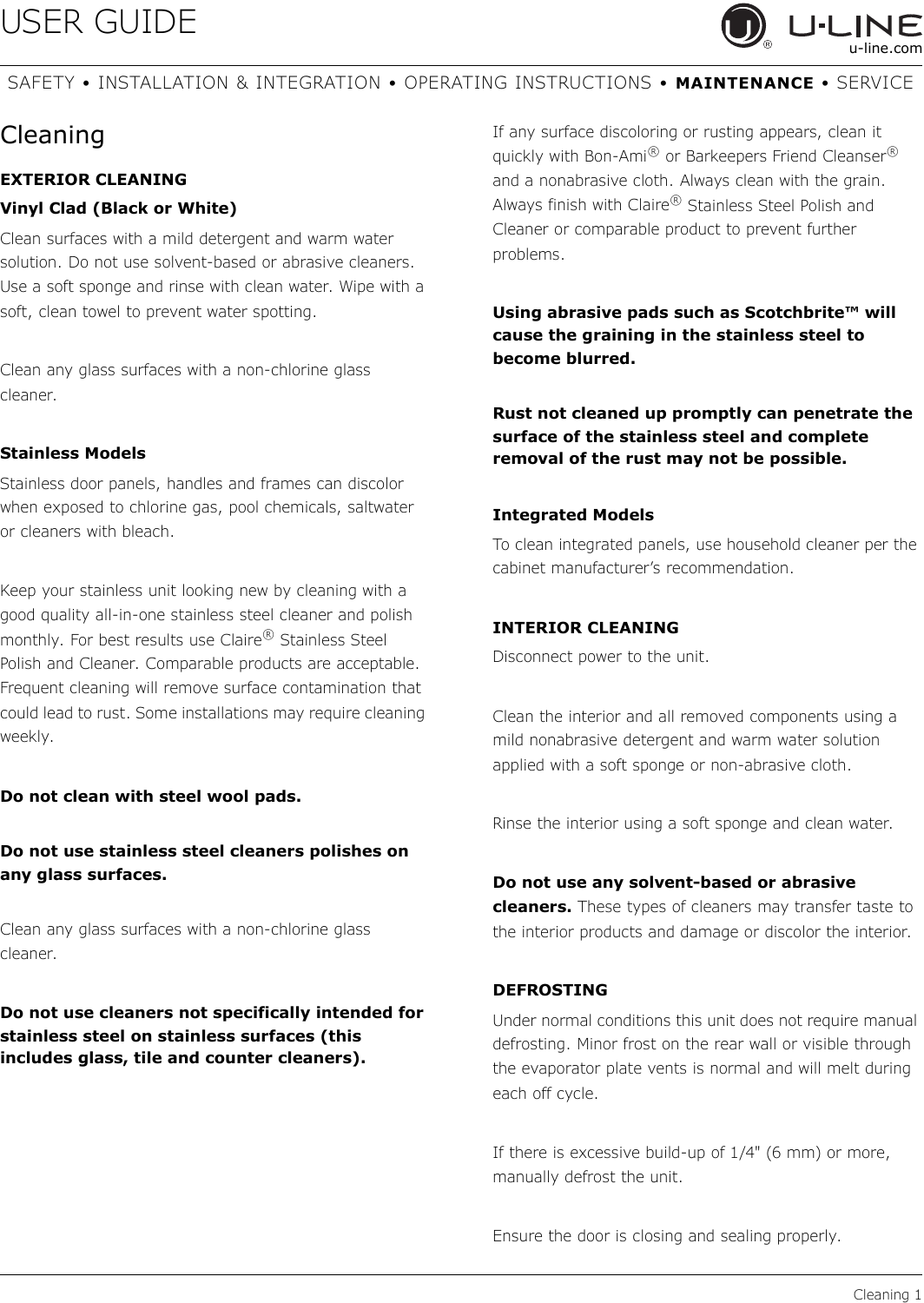 SAFETY • INSTALLATION & INTEGRATION • OPERATING INSTRUCTIONS • MAINTENANCE • SERVICE