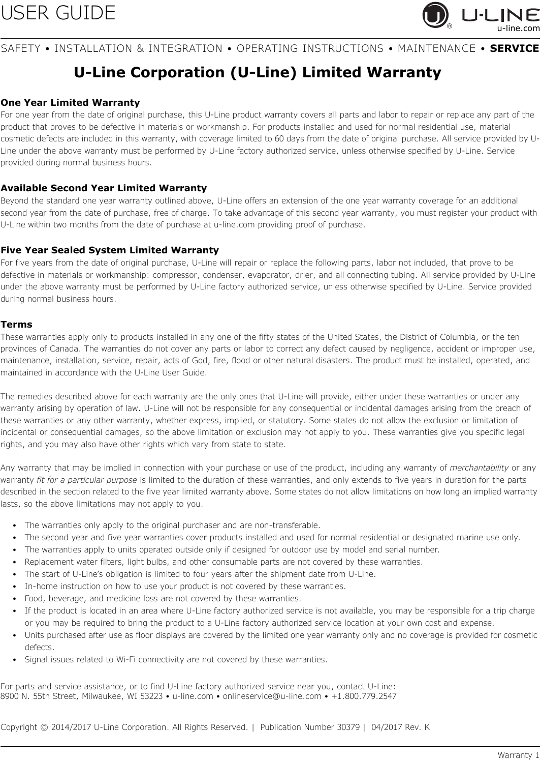 Copyright © 2014/2017 U-Line Corporation. All Rights Reserved. | Publication Number 30379 | 04/2017 Rev. K