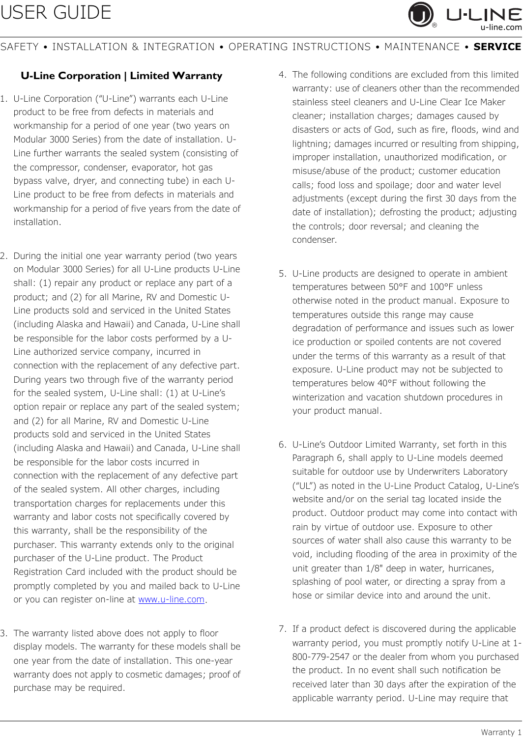 1. U-Line Corporation (“U-Line”) warrants each U-Line