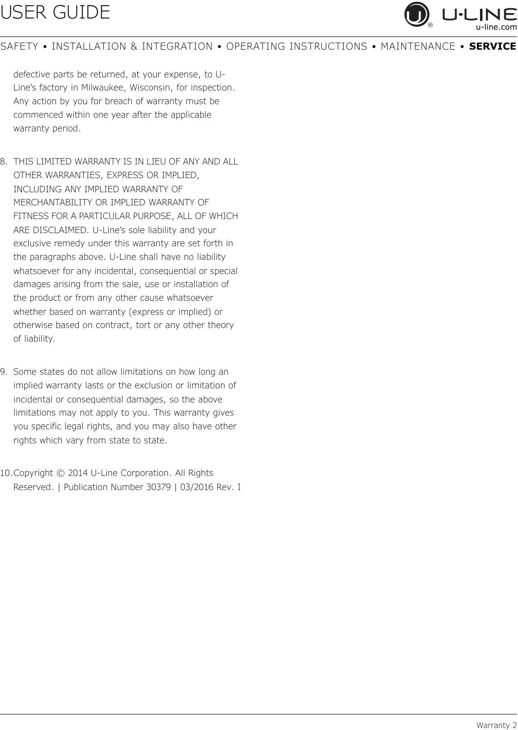 10.Copyright © 2014 U-Line Corporation. All Rights