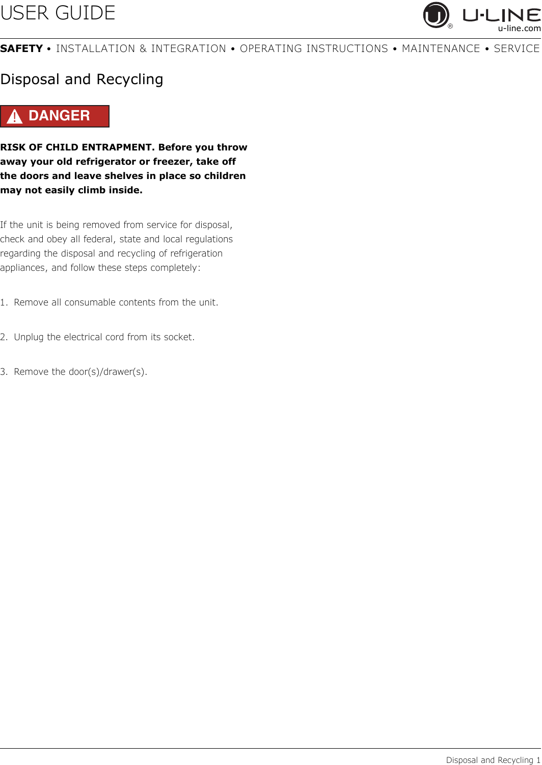 SAFETY • INSTALLATION & INTEGRATION • OPERATING INSTRUCTIONS • MAINTENANCE • SERVICE