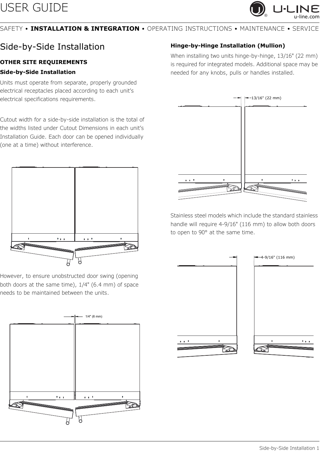 When installing two units hinge-by-hinge, 13/16" (22 mm)