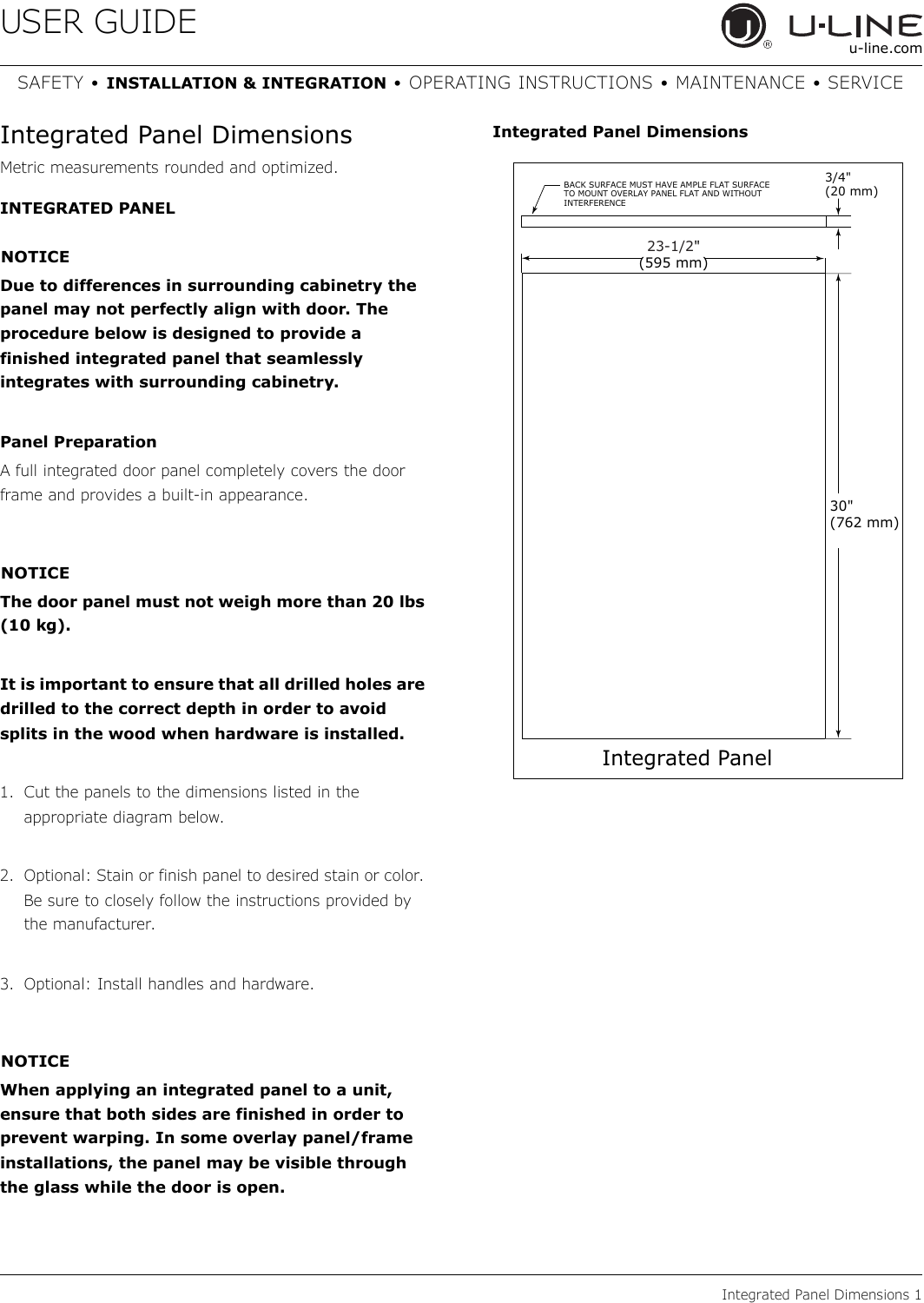 SAFETY • INSTALLATION & INTEGRATION • OPERATING INSTRUCTIONS • MAINTENANCE • SERVICE
