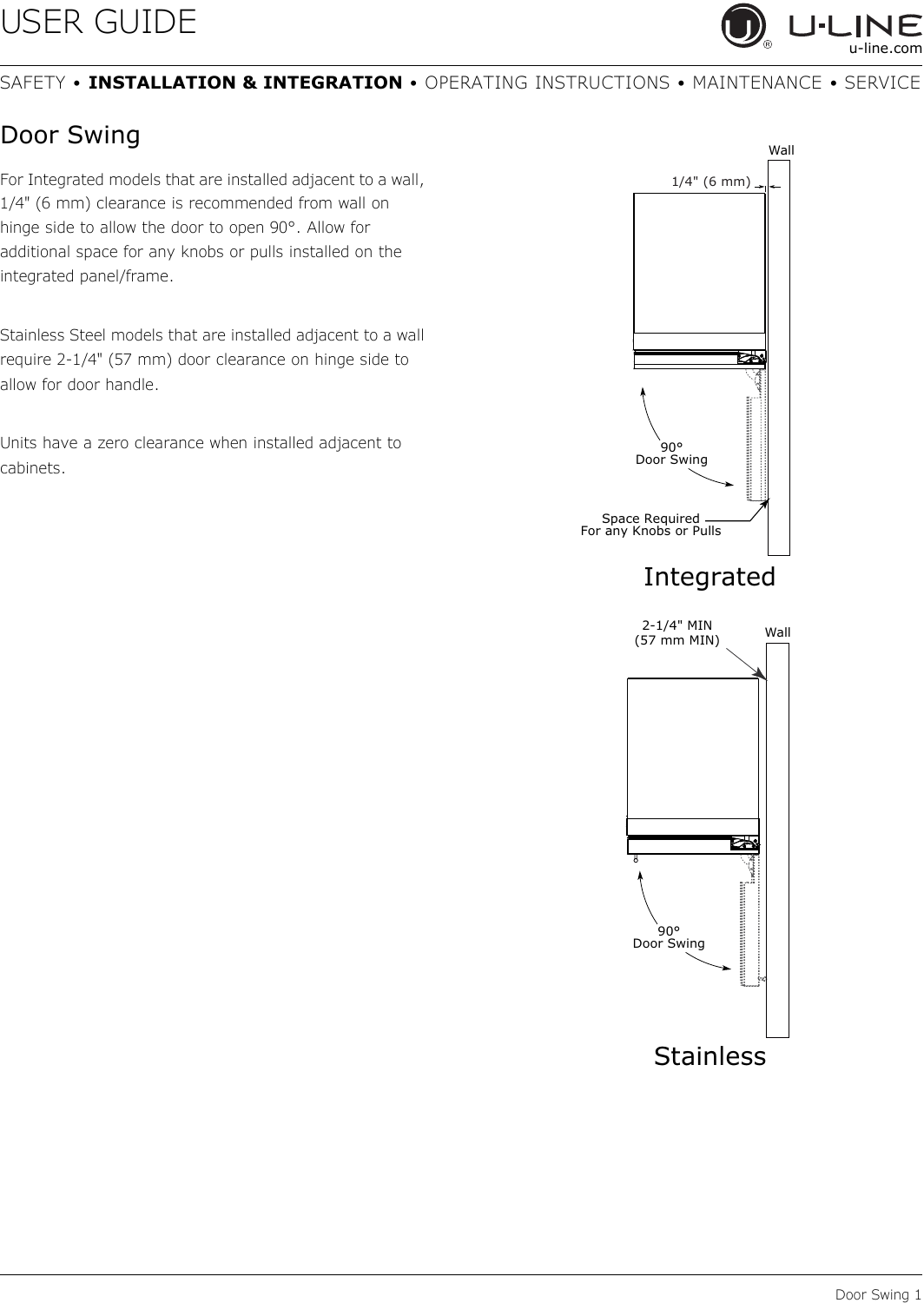 For Integrated models that are installed adjacent to a wall,