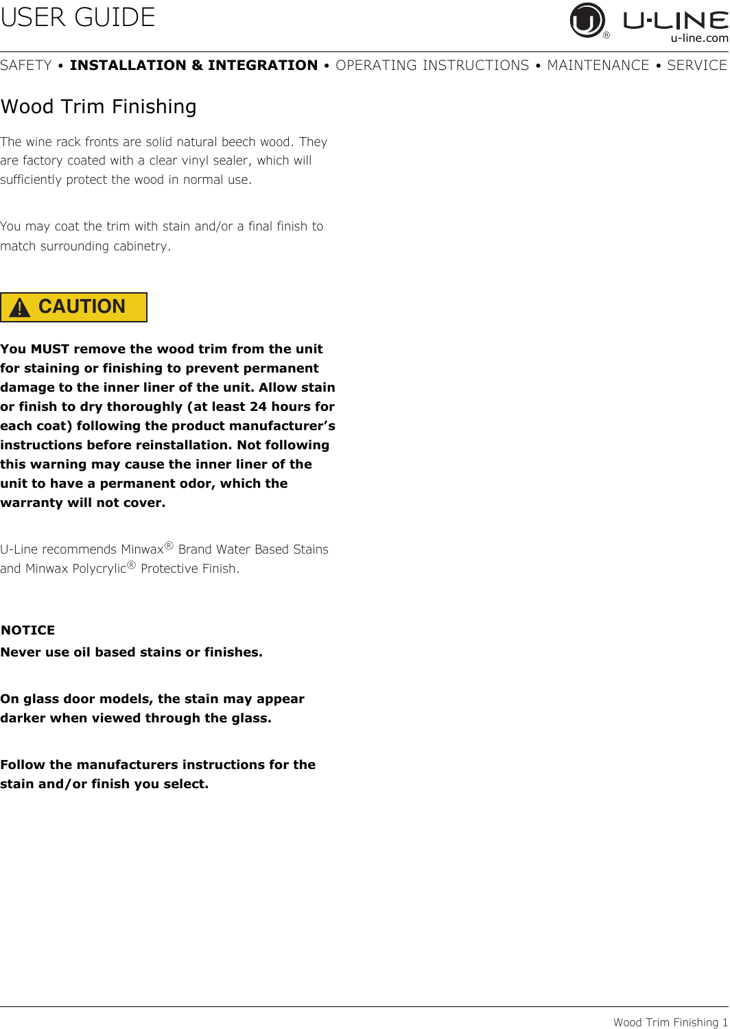 SAFETY • INSTALLATION & INTEGRATION • OPERATING INSTRUCTIONS • MAINTENANCE • SERVICE