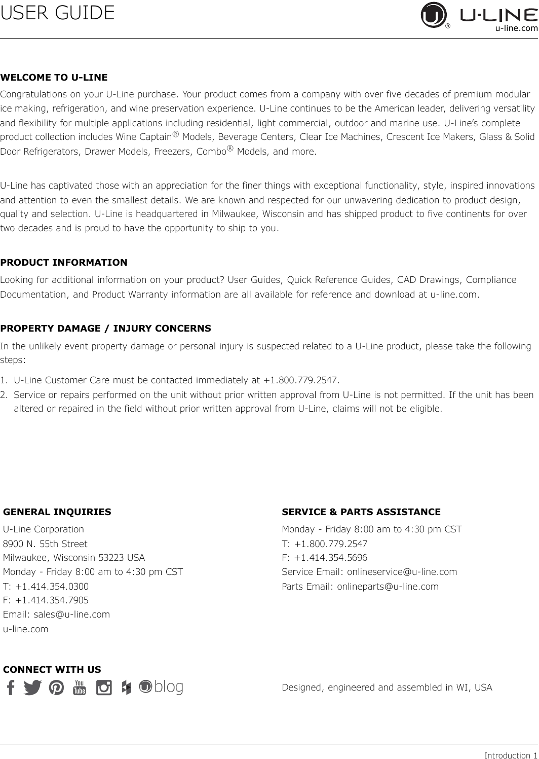 Congratulations on your U-Line purchase. Your product comes from a company with over five decades of premium modular