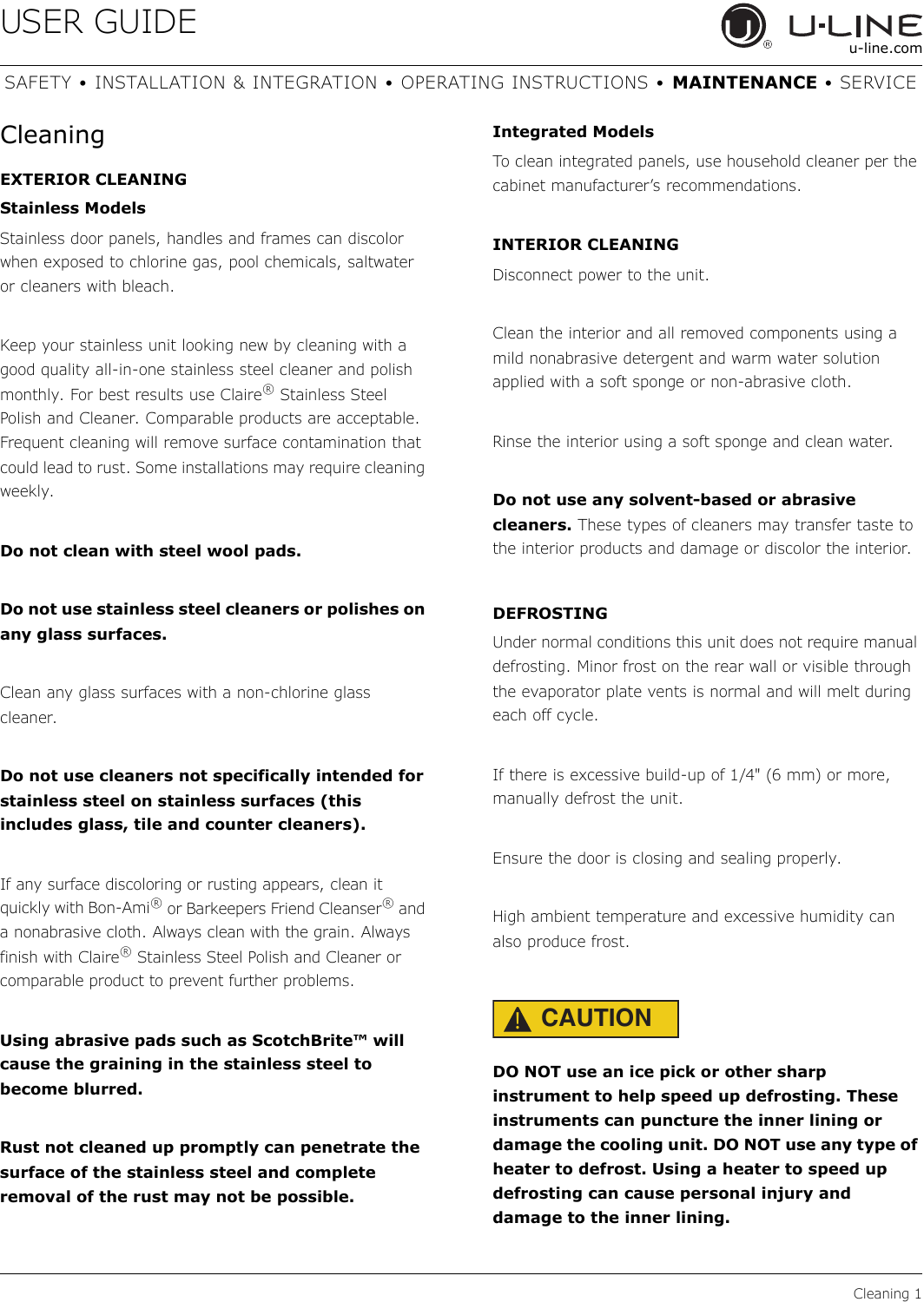 SAFETY • INSTALLATION & INTEGRATION • OPERATING INSTRUCTIONS • MAINTENANCE • SERVICE