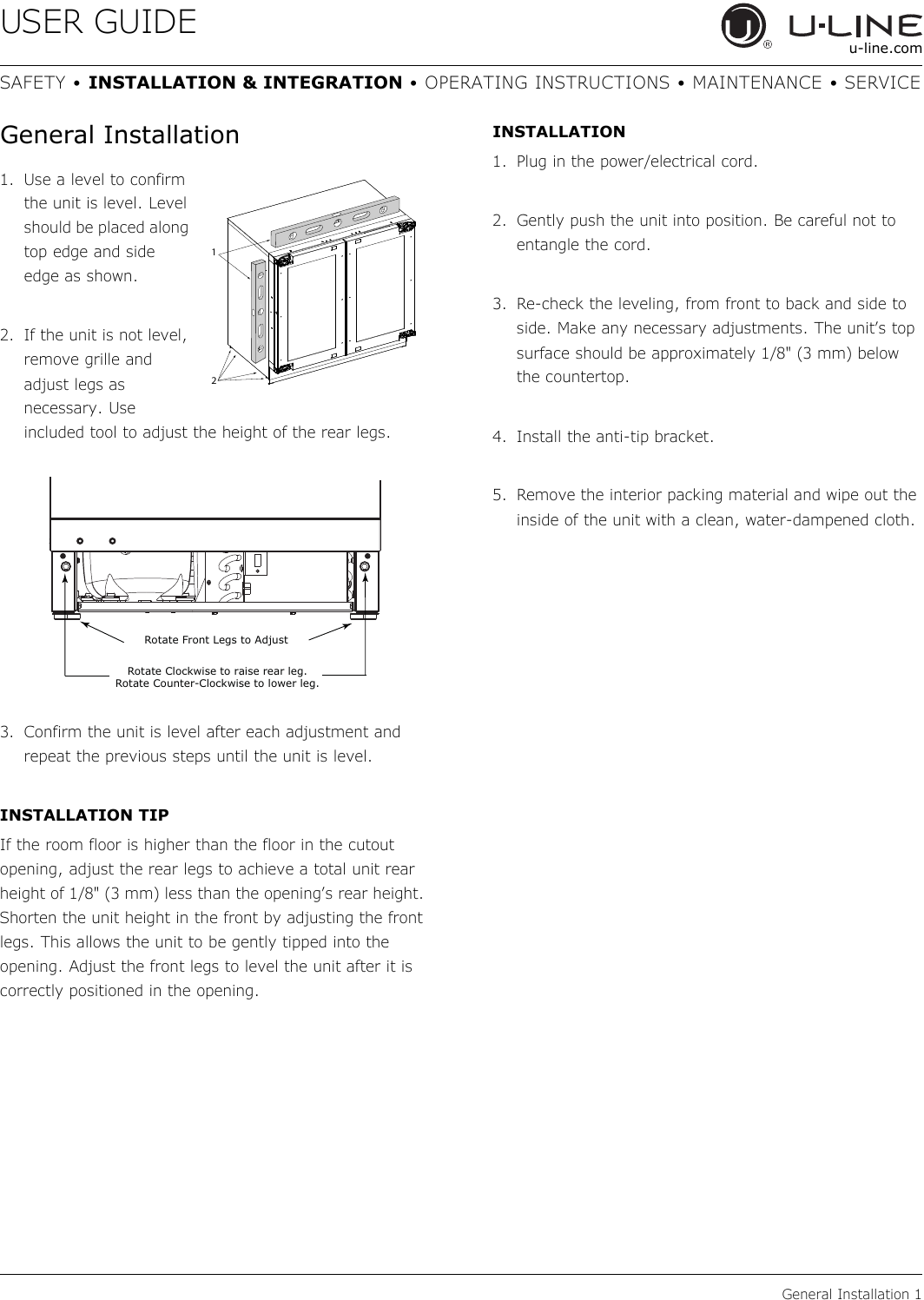 SAFETY • INSTALLATION & INTEGRATION • OPERATING INSTRUCTIONS • MAINTENANCE • SERVICE