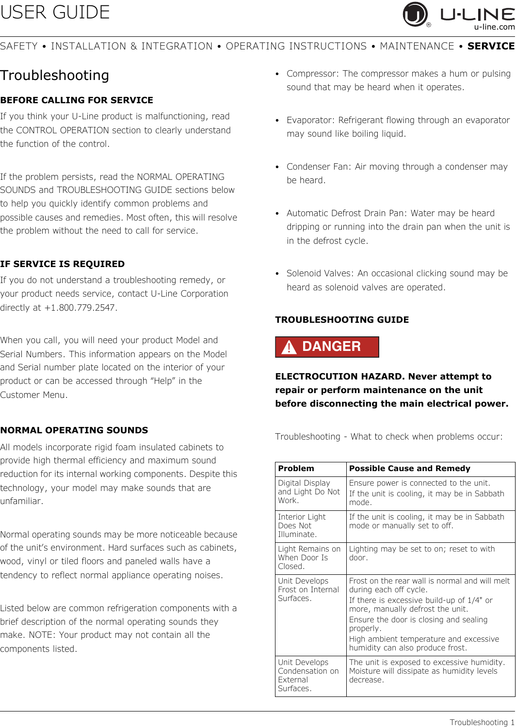 SOUNDS and TROUBLESHOOTING GUIDE sections below