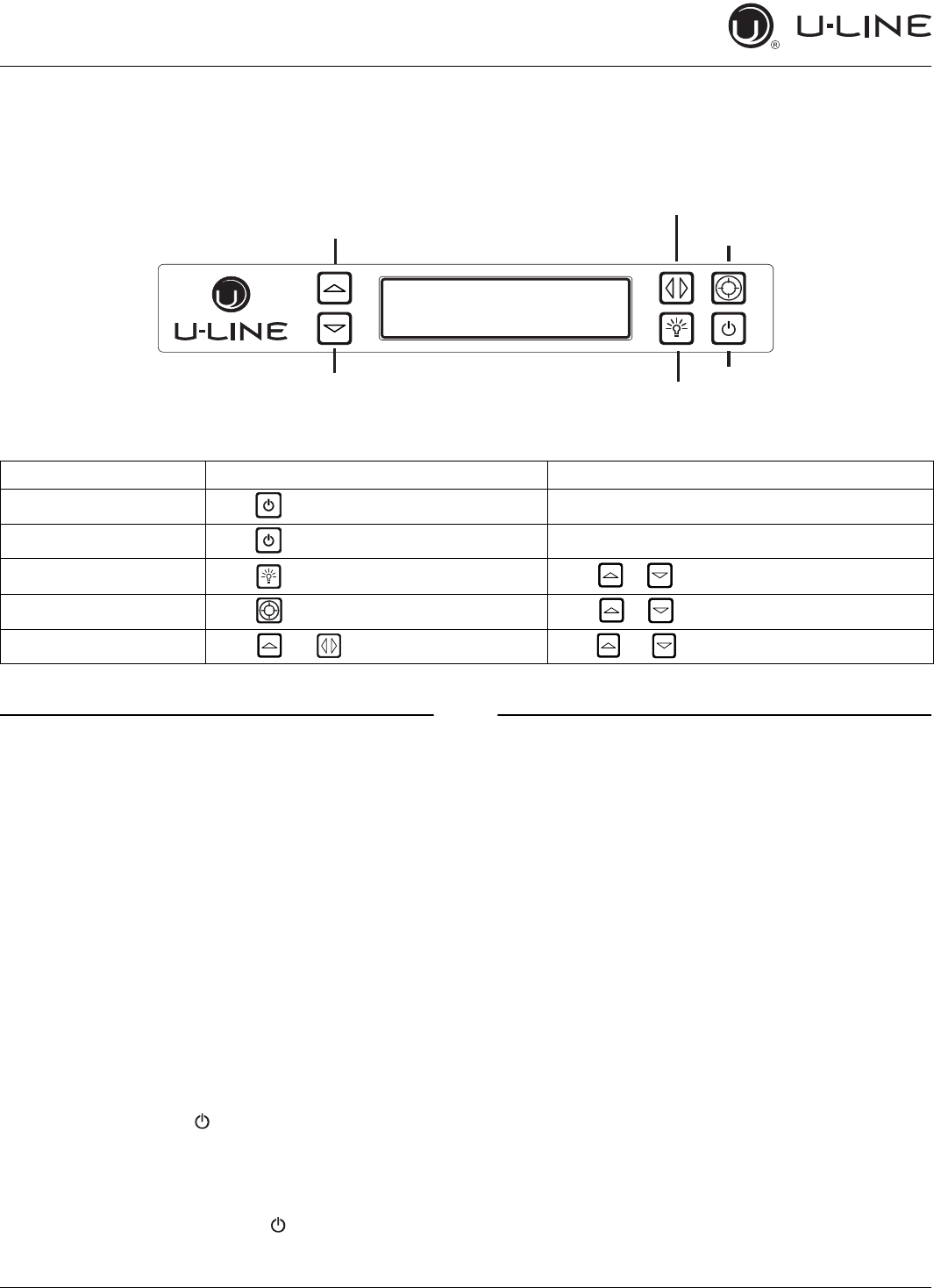 Service menu Press and hold for 5 seconds Press to scroll through menu.