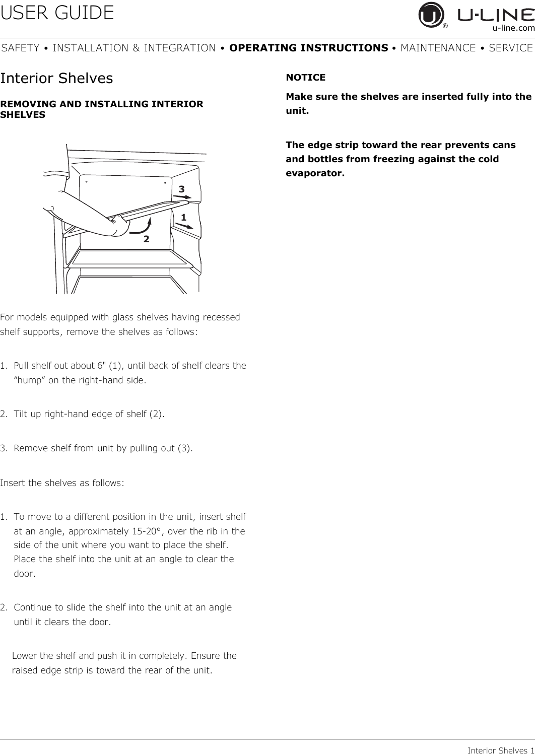 1. To move to a different position in the unit, insert shelf