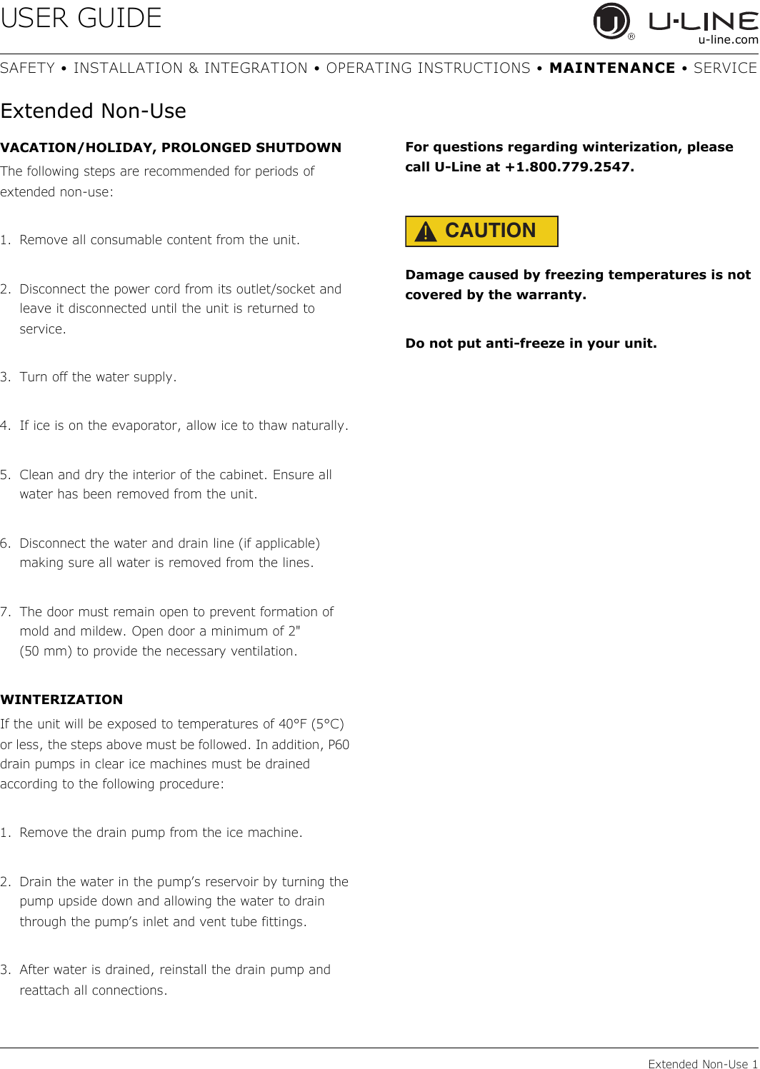 VACATION/HOLIDAY, PROLONGED SHUTDOWN