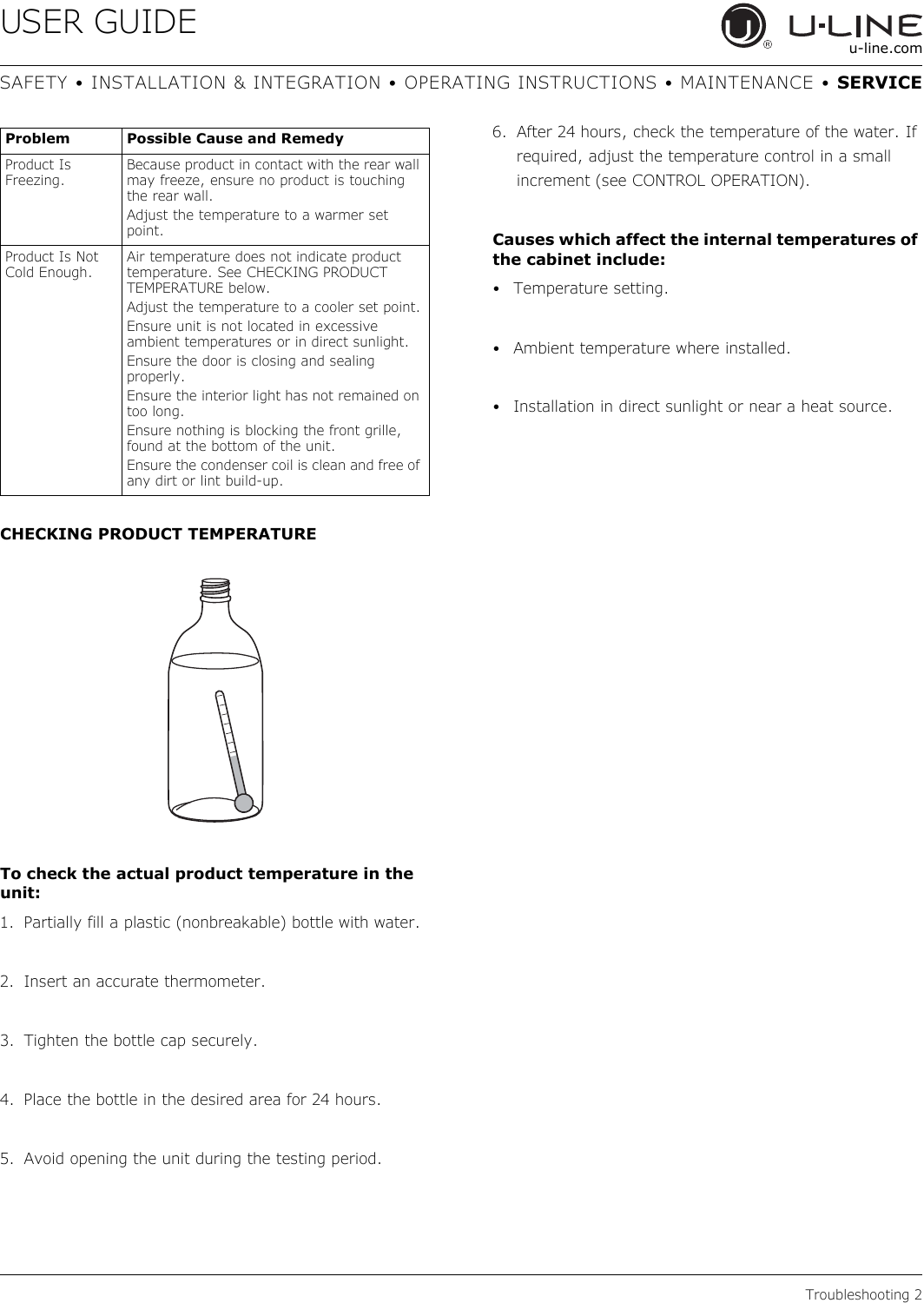 temperature. See CHECKING PRODUCT
