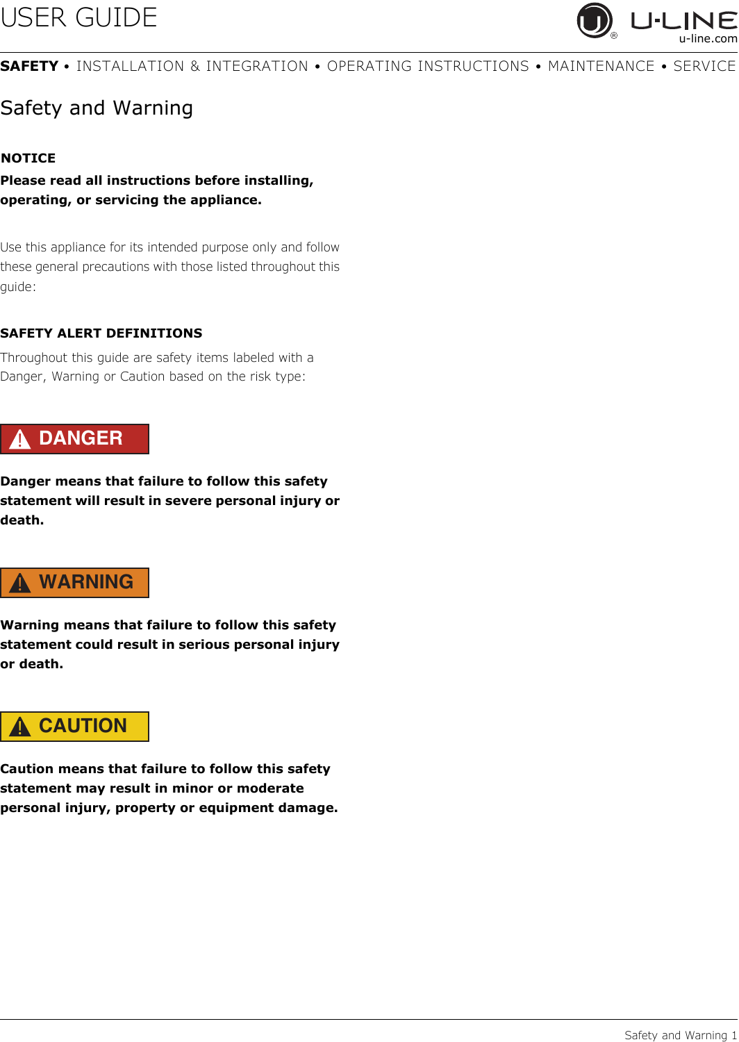 SAFETY • INSTALLATION & INTEGRATION • OPERATING INSTRUCTIONS • MAINTENANCE • SERVICE
