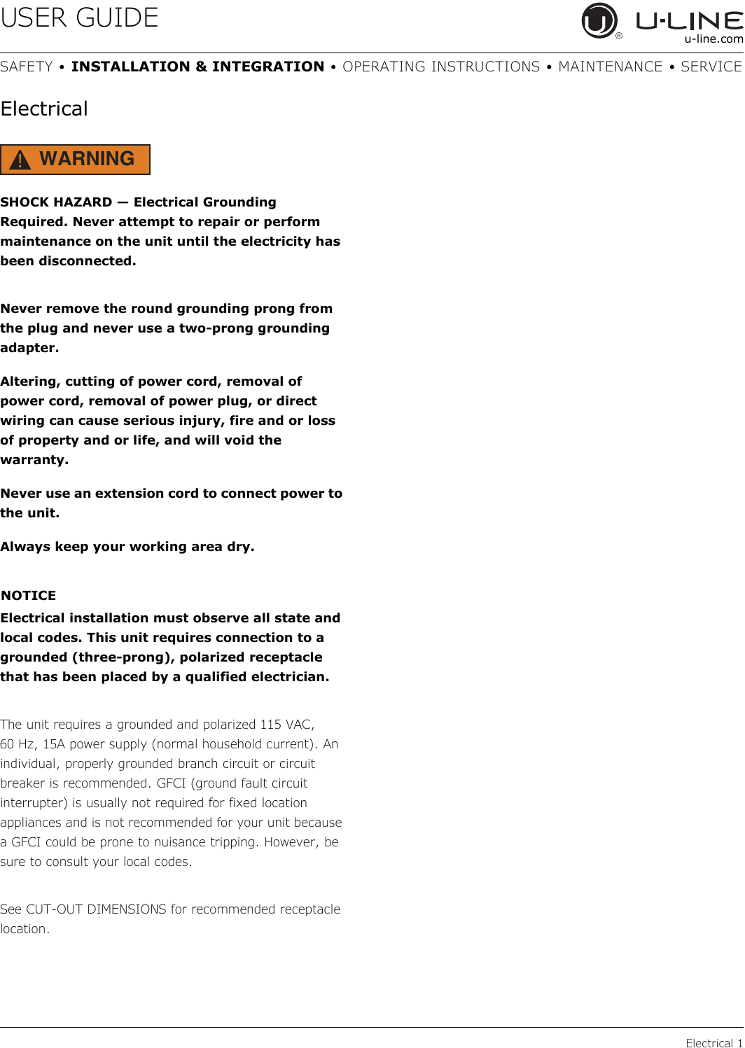SAFETY • INSTALLATION & INTEGRATION • OPERATING INSTRUCTIONS • MAINTENANCE • SERVICE