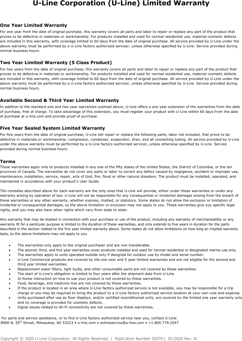 Copyright © 2020 U-Line Corporation. All Rights Reserved. | Publication Number 30379 | 01/2020 Rev. N