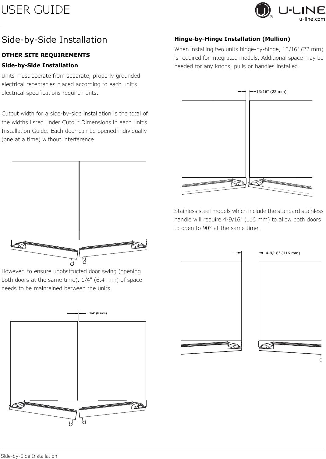When installing two units hinge-by-hinge, 13/16" (22 mm)