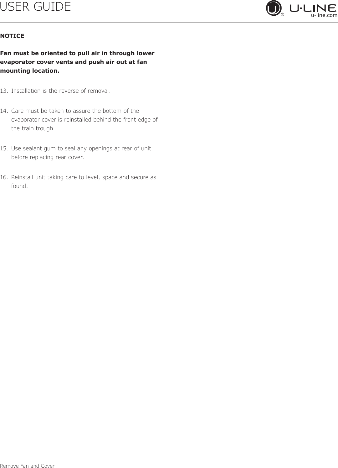 16. Reinstall unit taking care to level, space and secure as