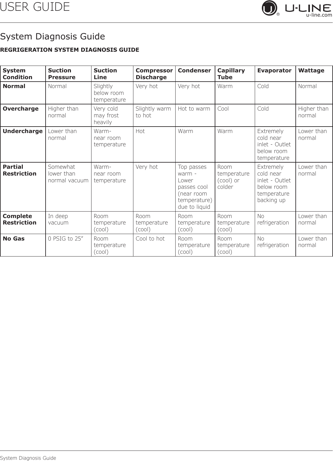 REGRIGERATION SYSTEM DIAGNOSIS GUIDE