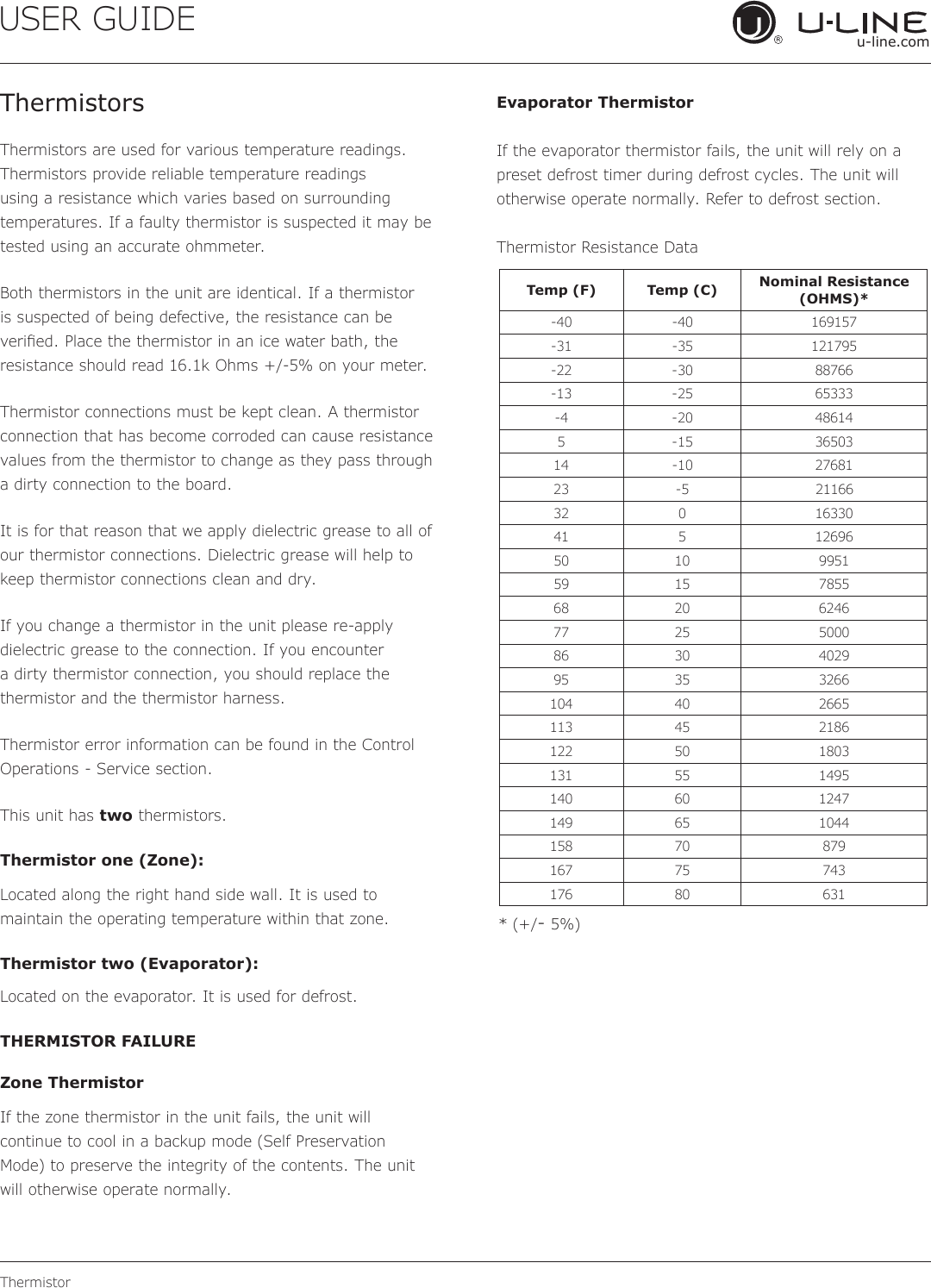 temperatures. If a faulty thermistor is suspected it may be