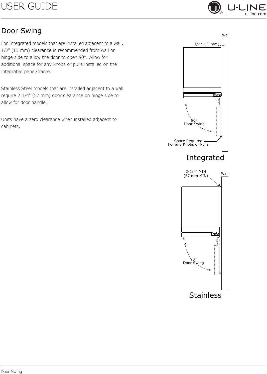 Stainless Steel models that are installed adjacent to a wall