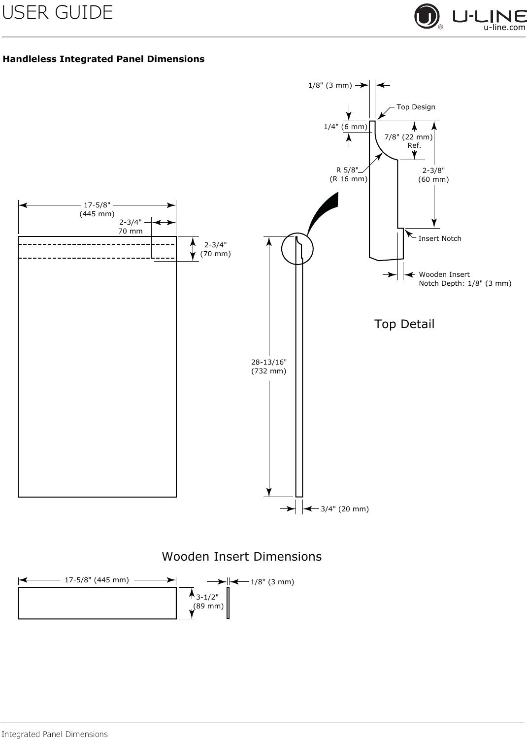 Handleless Integrated Panel Dimensions