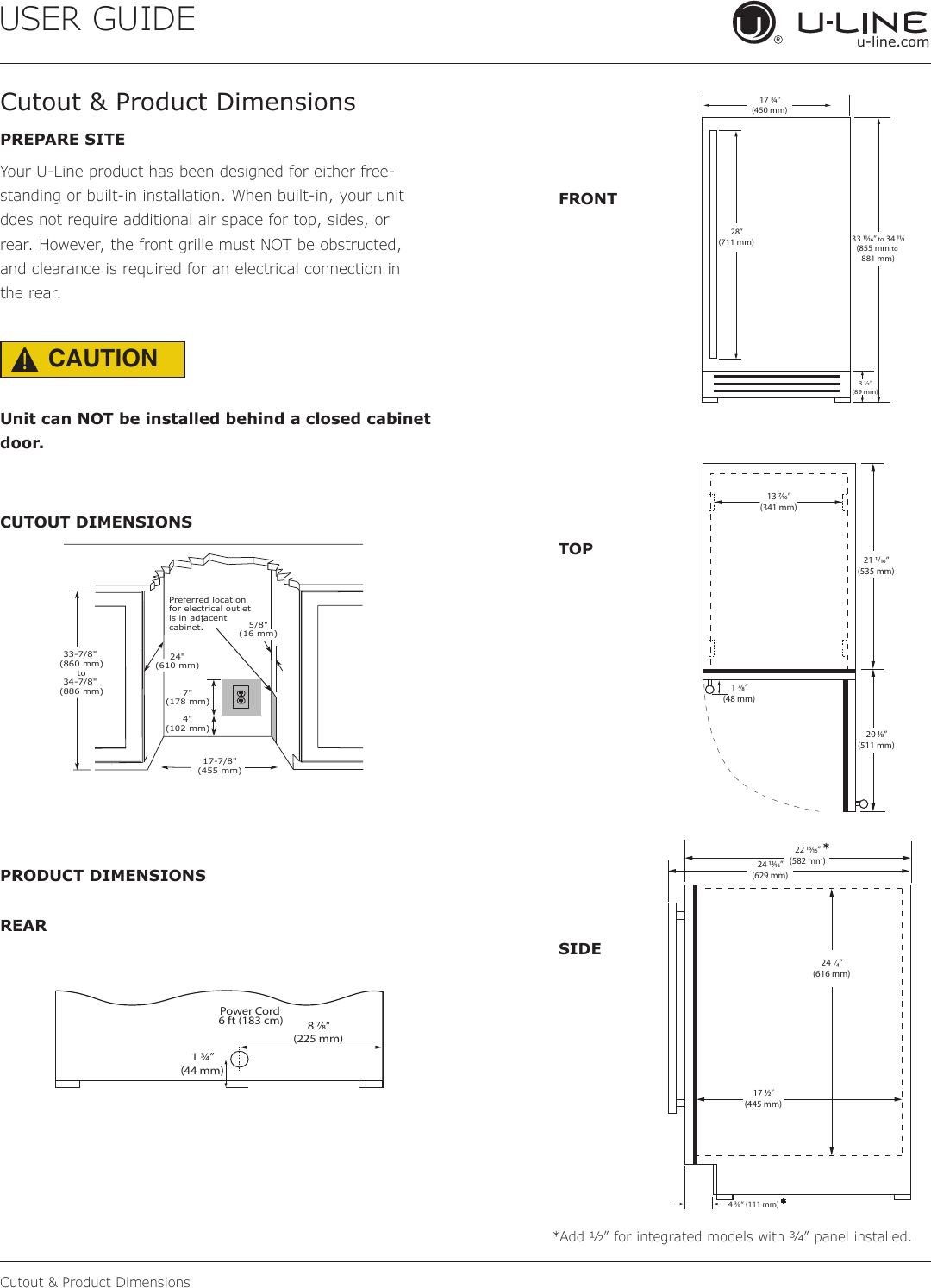*Add 1⁄2” for integrated models with 3⁄4” panel installed.