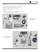 9. Remove faucet from tower with supplied faucet wrench. Disassemble, and place all the parts in drainage bucket. 10. Add washer and attach cleaning pump connector to tower. Tighten with faucet wrench. 11. Pump all the solution through the beverage line. 12. Allow tap coupler and faucet to soak in drainage bucket and then use faucet brush to clean faucet. 13. Rinse out and refill plastic jar with clean water. Pump all the water through the beverage line to rinse. 14.