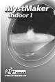 = MystMaker I käyttöohje MystMaker I on laite, joka ultraäänitekniikan avulla hajottaa vesisuihkun ja aikaansaa näin sekä aidon vesisumun että ilmankosteuden. MystMaker I on tarkoitettu käytettäväksi sisätiloissa mitä moninaisimmissa käyttötarkoituksissa, esim. tunnelmaa luovana tehosteena koristelähteissä, ilmankosteuttajana terraarioissa, tai luomaan miellyttävä huoneilma.