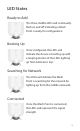 LED States Ready to Add The three middle LEDs will continually flash on and off indicating a Mesh Point is ready for configuration. Booting Up Once configured, the LEDs will indicate the device is booting up with a looping motion of the LEDs lighting up from bottom to top. Searching for Network The LEDs will indicate the Mesh Point is searching for the network by lighting up from the middle outwards. Connected Once the Mesh Point is connected, the LEDs will represent the signal strength.