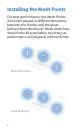 Installing the Mesh Points For best performance, the Mesh Points should be placed in different directions between the Router and the areas farthest from the Router. Mesh multi-hop should only be used when necessary as performance will degrade with each hop.
