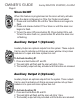 OWNER’S GUIDE Page 6 2way REMOTE STARTER/ ALARM Lock Doors and Arm Alarm 1 2 34 1.Press and release button #1 on the remote transmitter. 2.The park lights will flash and the siren will chirp one time. 3.The doors will lock. 4.The LEDs on the antenna will start flashing within five seconds. Note: If installed, the starter disable will activate. * To Lock/Arm without chirps, press #1 and #2 at the same time. Unlock Doors and Disarm Alarm 1 2 34 1.Press and release button #2 on the remote transmitter. 2.