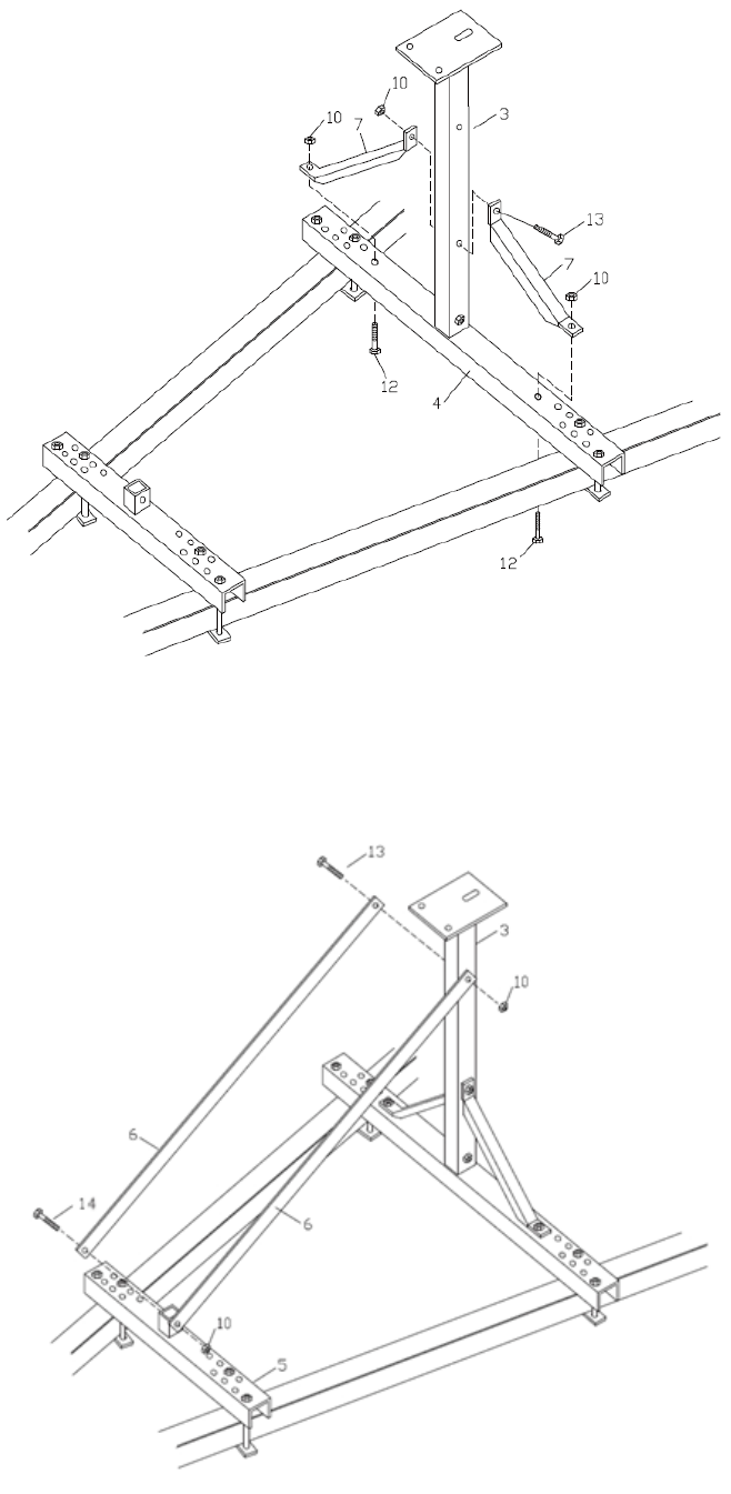 4. Attach one end of each of the #6 Plate to the #3 Stand using the #13 Hex Bolt M10x65 and the