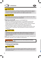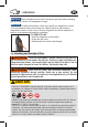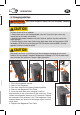 EN OPERATION 6. Loading and Unloading Projectiles CAUTION 1 Ø 6 mm 4 3 2 Only use flawless BBs: Never use the following BBs: 1 diameter larger than 6 mm, 2 with edges, 3 both halves not aligned, 4 used, soiled. Warranty expires if non-recommended BBs are used. It‘s recommended to use precision BBs from Umarex USA / Elite Force. To ensure proper operation of the magazine, protect it from dirt and dust. WARNING Use .24 caliber (6 mm) plastic BBs only in this airsoft gun.