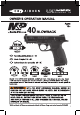 Smith & Wesson M&P40 Specifications Action Semi Auto Power Source CO2 Caliber / .177 Cal. Ammunition (4.5 mm) Steel BB Capacity 15 BBs Weight 1.61 lb. (.73 kg) Sights Overall Length Barrel Length Barrel Safety Velocity Danger Distance Caractéristiques du Smith & Wesson M&P40 Action Semi Auto Mires Longueur Systéme CO2 Calibre / 0,177 Cal. Longueur du Projectiles (4,5 mm) canon projectiles Canon d’acier Sûreté Chargeur du 15 coups Vélocité Capacité Distance Poids 0,73 kg Dangereuse Fixed 7.75" (19.